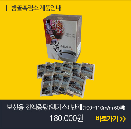 흑염소 지육 11~12kg 통1마리 + 냄새 제거용 기본 부자재와 들깨, 검정콩, 산밤, 대추 등 순 국내산 곡물을 첨가하여 고압 2중 솥에다 중당(엑기스)로 추출해내는 남녀공용 고단백 보양식품 입니다.